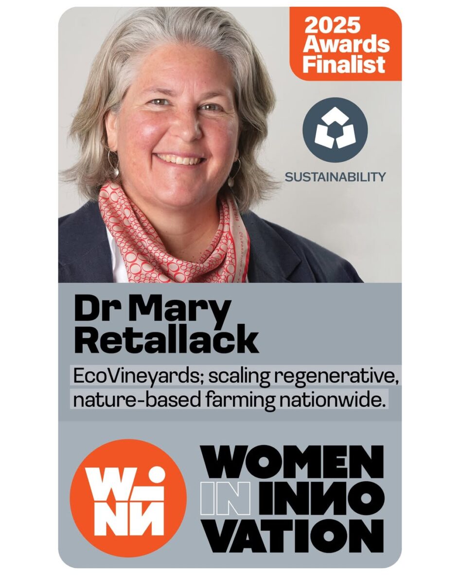We are delighted to share that our very own Dr Mary Retallack is a finalist in the 2025 Women in Innovation Awards and is showcasing the EcoVineyards program.
